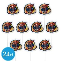 Spin up ceiling fun with Spiderman Swirl Decorations. Blue, gold and red foil swirls with character cutouts make instant superhero style. Explore our Spider-Man party supplies and see more hanging decorations.