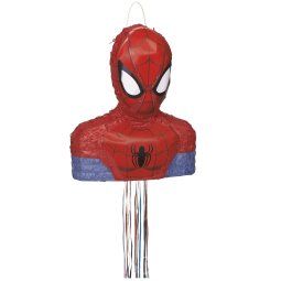 Featuring a bust of the swinging superhero, this red pinata makes for a great party decoration and safe activity. Let guests take turns pulling the strings at the bottom until one releases the party favours or candy inside (sold separately). Hang this pull string pinata at a Spiderman birthday party or a Webbed Wonder event!