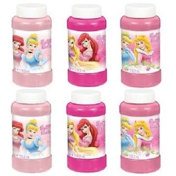 Package includes 6 plastic Princess Bubbles, each containing 118.2ml of non-toxic bubble solution.