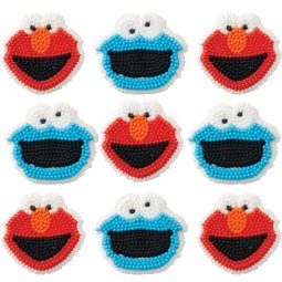 Pack of 9, Elmo & Cookie Monster Cupcake Icing Decorations.