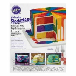 Simple or spectacular on the outside, always surprisingly beautiful on the inside, the checkerboard cake is party favorite. Use the Square Checkerboard Cake Pan Set to bake multi-colored cake layers.