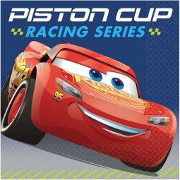 Turn the table at your little one's birthday party into the Motor Speedway of the South with these Cars 3 Small Napkins! These small paper napkins feature an image of Lightning McQueen on a blue background with a "Piston Cup Racing Series" headline above him. Place these Lightning McQueen napkins on the table; they'll match the rest of your Cars tableware and keep the little speed racers clean!