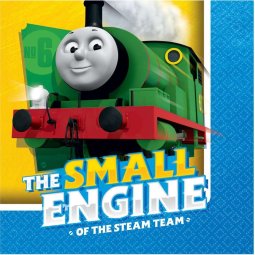 Complete your Thomas the Tank Engine party tableware with Thomas the Tank Engine Small Napkins! These small paper napkins feature Percy above the headline "The Small Engine of the Steam Team." Use beverage napkins as coasters or to accentuate the rest of your train-themed decorations. Bring the beloved green steam train to your birthday party with these beverage napkins!