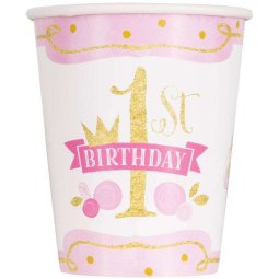 Pink & Gold First Birthday Paper Cups (Pack of 8)
