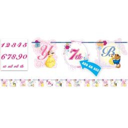 Decorate your daughter's Disney Princess party with a Beauty and the Beast Birthday Banner Kit! Featuring the Beast, Belle, and other Beauty and the Beast characters, this letter banner includes attachable numbers from 0 to 9 to customize with the birthday girl's age. Make your little princess' birthday special by adding this letter banner to your Beauty and the Beast decorations!
