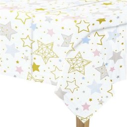 Set a dream-like setting with a Twinkle Twinkle Little Star Table Cover! This plastic table cover features a white background covered in pink, blue, silver and gold stars. Use the table cover indoors or out at your Twinkle Twinkle Little Star baby shower or gender neutral first birthday party. Place a gold star table cover on the table for easy cleanup at your party.