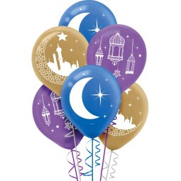 Get your home ready for a religious celebration with these Eid Latex Balloons! Each colour latex balloon features a unique design, including a blue crescent moon and star, a gold crescent moon and mosque, and a purple lantern. Combine these religious balloons to create a custom balloon bouquet or let them stand by themselves to decorate your party space. Use these colourful balloons to decorate for Eid al-Fitr or Eid al-Adha!