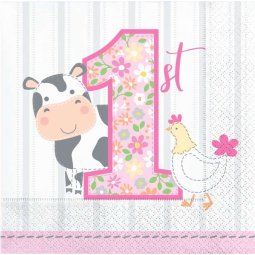 Farm 1st Birthday Girl Small Napkins (Pack of 16)