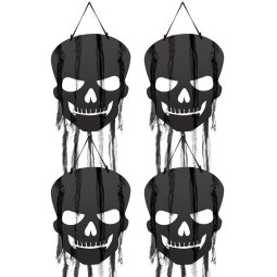 Package includes four Hanging Skull Cutout Decorations each measuring long 66cm with attached string loop for hanging.