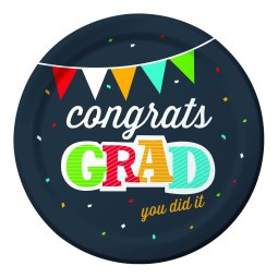 Celebrate your big milestone, grad! Head of Class Graduation Dessert Plates feature a "Congrats Grad!" headline with festive confetti flourish on a navy background. These round paper plates are the perfect size for appetizers and desserts!