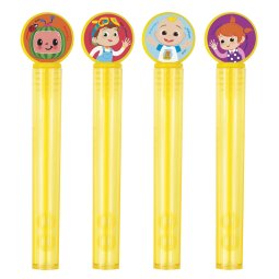 Make snack time sweet with CoComelon Small Paper Plates - round dessert plates featuring TomTom, JJ & YoYo with birthday balloons on a peach background and bright green border. Pack of 8; 17.7 cm; paper.