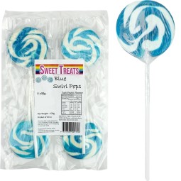 With white and blue hard candy swirled together, these tutti-frutti flavoured swirl lollipops are as eye-catching as they are tasty. The 4 individually wrapped lollipops ready to go into treat bags or to be handed out as favours. These classic lollipops also make a great addition to your blue candy buffet or holiday candy display.